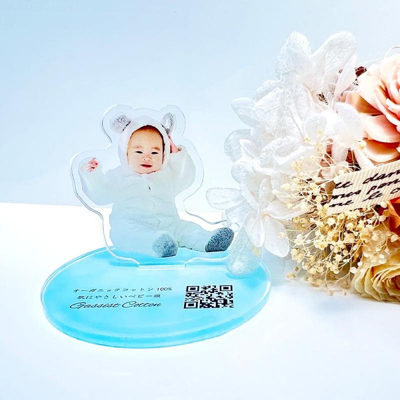 QRコード付きのアクスタなのでイベントのノベルティや記念品として自社のサイトの紹介ツールとしての作成におすすめです!