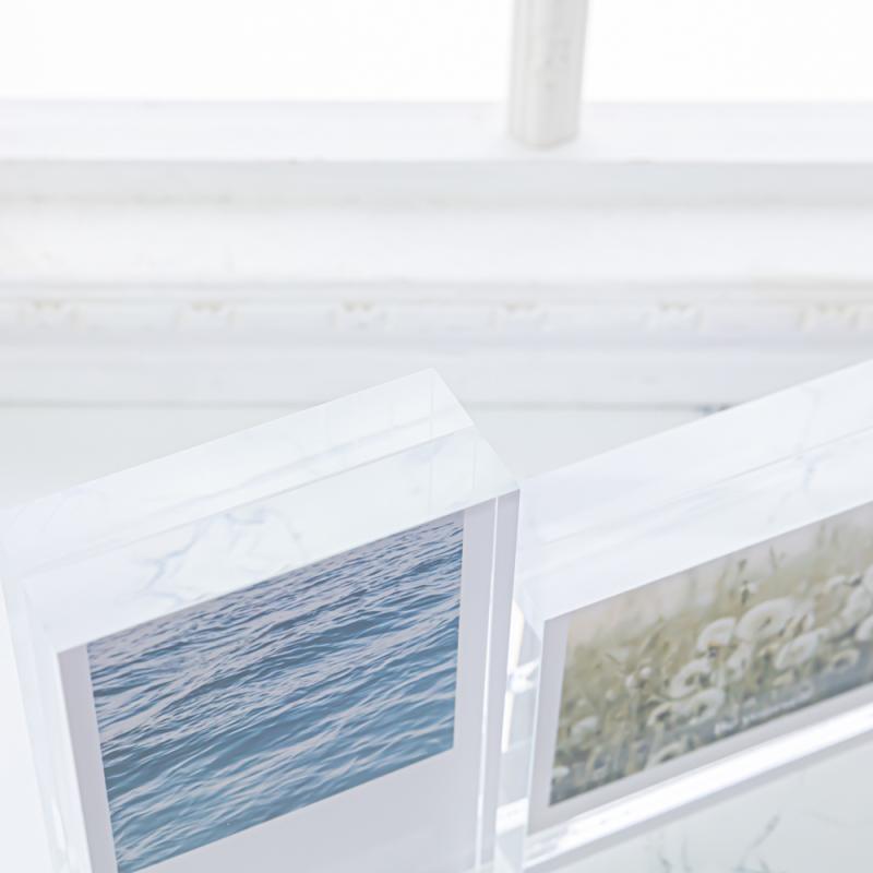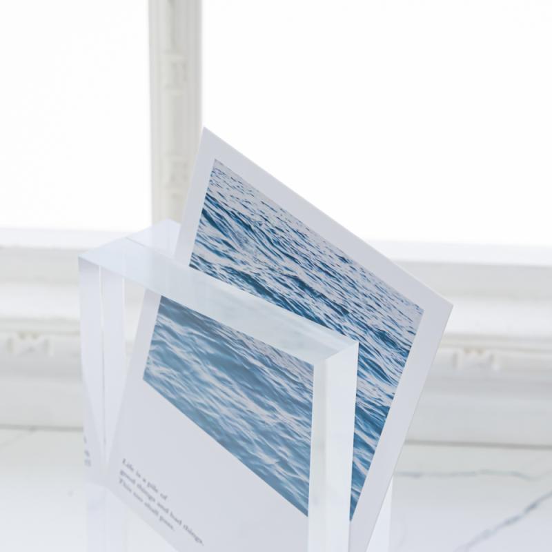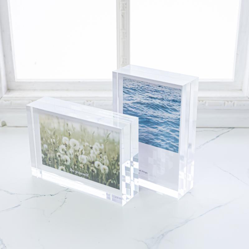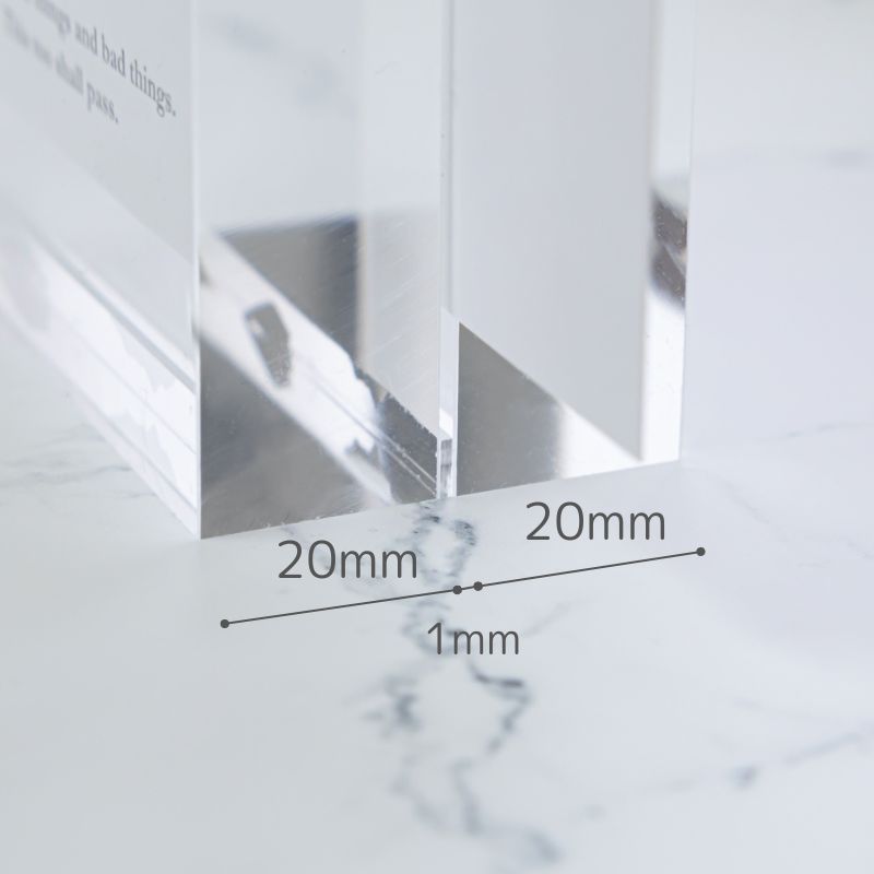・アクリルはガラスよりも透明度が高く、端面の歪みもないので、イラストや写真を邪魔しません